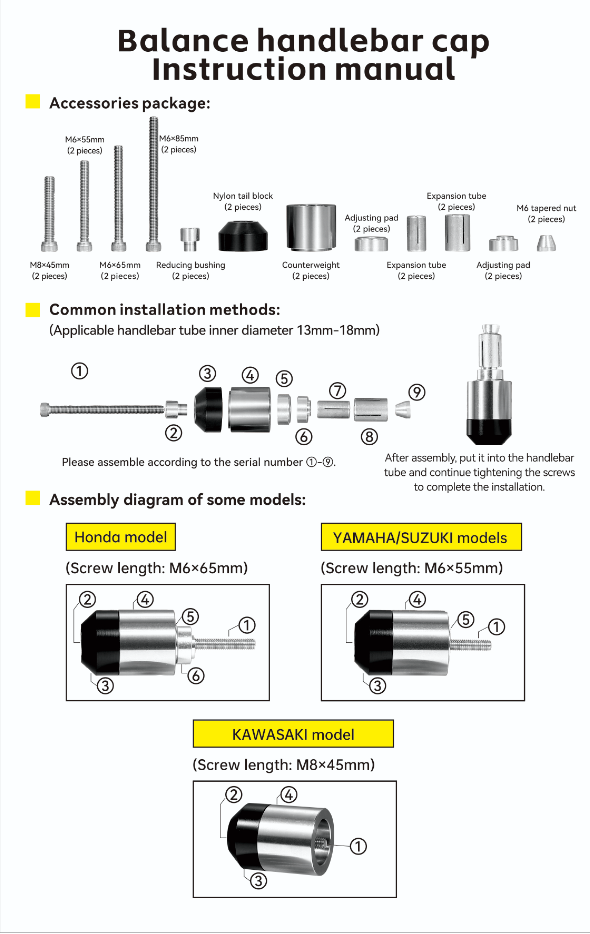 · Universal Fit: Fits most motorcycles with handlebar inner diameters of 13mm–18mm