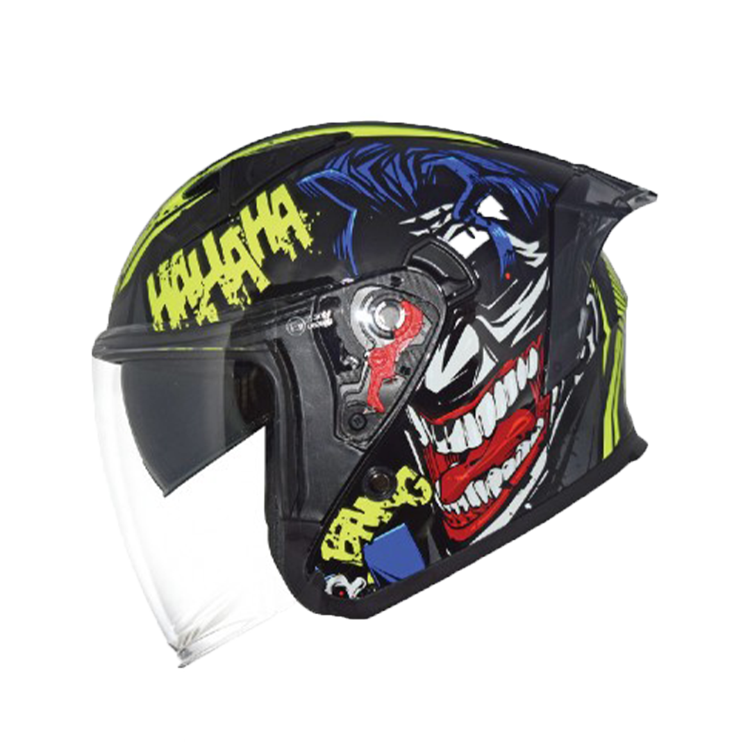 Turn heads on the road with the TRAX TZ301 G19 Surprise Yellow open-face helmet. Featuring a bold, comic-inspired graphic design, scratch-resistant clear visor, and a comfortable, breathable inner liner, this helmet ensures safety and style for your daily rides. Its lightweight construction and excellent airflow make it perfect for city commuting and weekend adventures.
